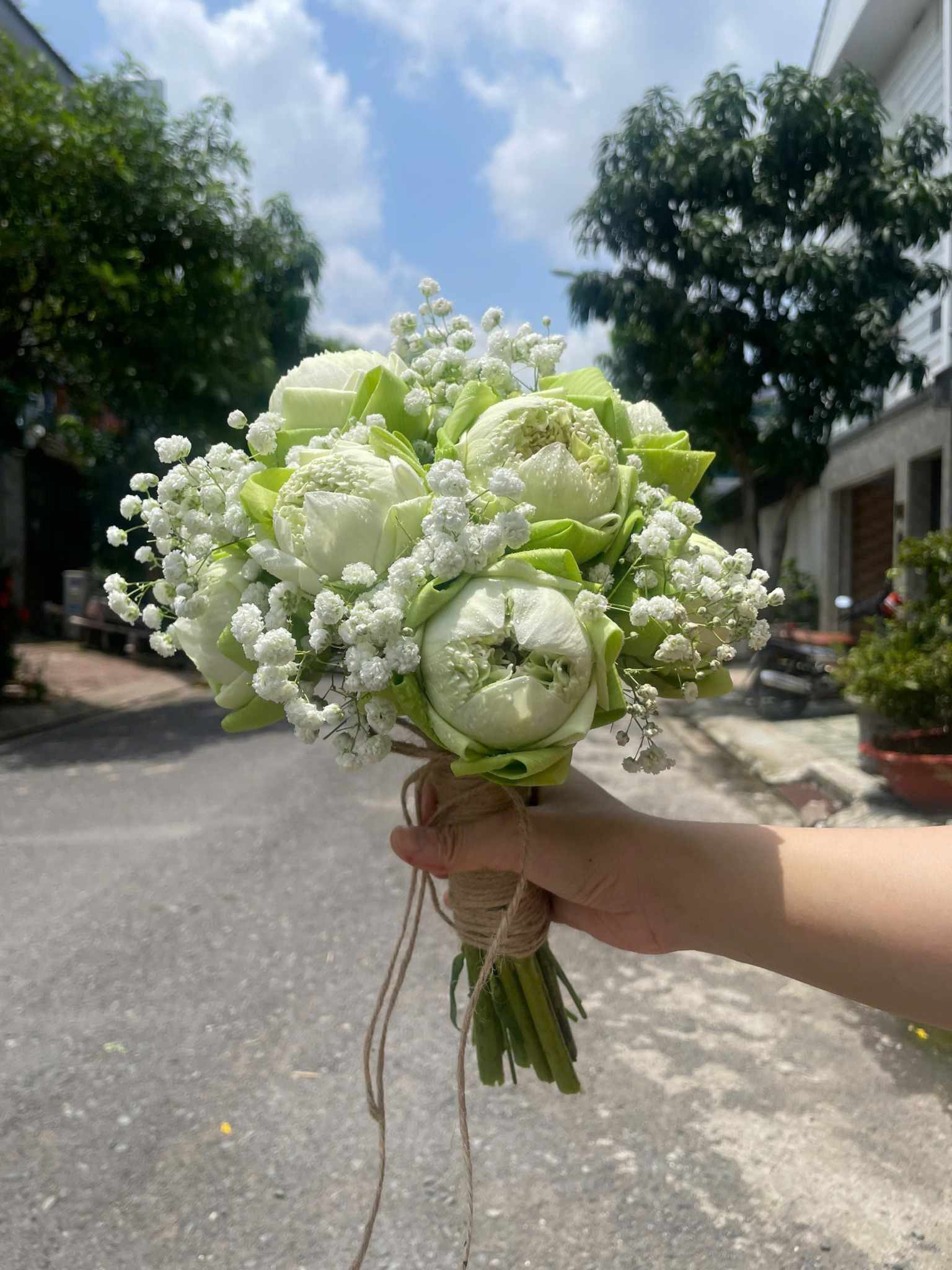 Sen trắng hoặc bó tròn trắng tinh là lựa chọn tuyệt vời cho các nghi thức truyền thống và lễ gia tiên.