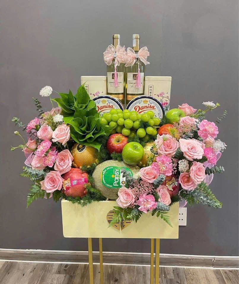 Trái cây: cam, xoài, lê, hoặc trái cây ngoại như cherry, táo Envy, nho mẫu đơn.