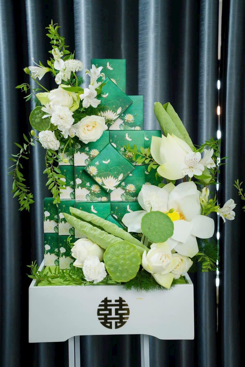 Để lễ cưới trở nên đồng bộ và hài hòa, TH Flower gợi ý cách phối màu giữa mâm quảtông trang trí chính của buổi lễ: