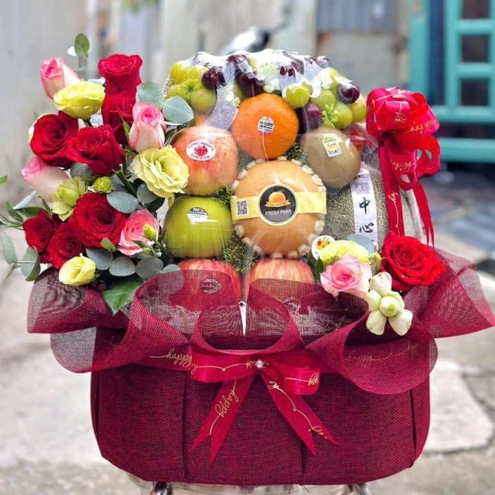 Mỗi loại trái cây trong giỏ đại diện cho một lời chúc riêng – tròn đầy, hạnh phúc và sung túc. Màu sắc rực rỡ của trái cây thể hiện niềm vui, sự thành công và khởi đầu thuận lợi.