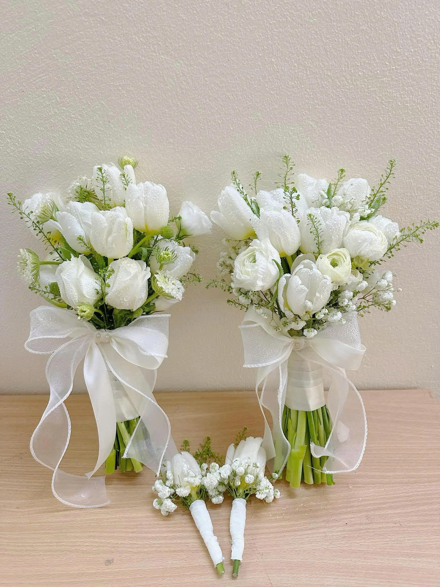 Hoa cưới tulips ngày càng được nhiều cô dâu lựa chọn bởi vẻ đẹp thanh thoát, hiện đại và tinh tế. Không cầu kỳ như mẫu đơn hay nhiều lớp như mao lương, tulip mang đến cảm giác nhẹ nhàng nhưng vô cùng sang trọng. Mỗi bông tulip như đang nghiêng mình, tạo nên bó hoa cưới nữ tính nhưng lại thể hiện sự tự tin, kiêu kỳ của cô dâu trong khoảnh khắc bước lên lễ đường.