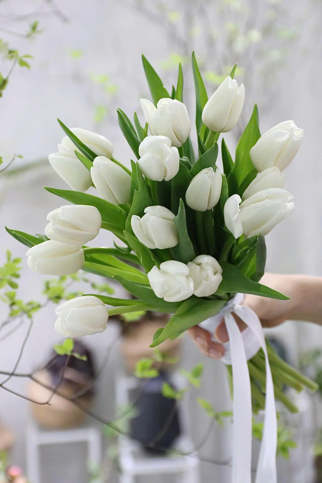 Phù hợp nhất: tulip trắng bó dài hoặc bó tự nhiên.